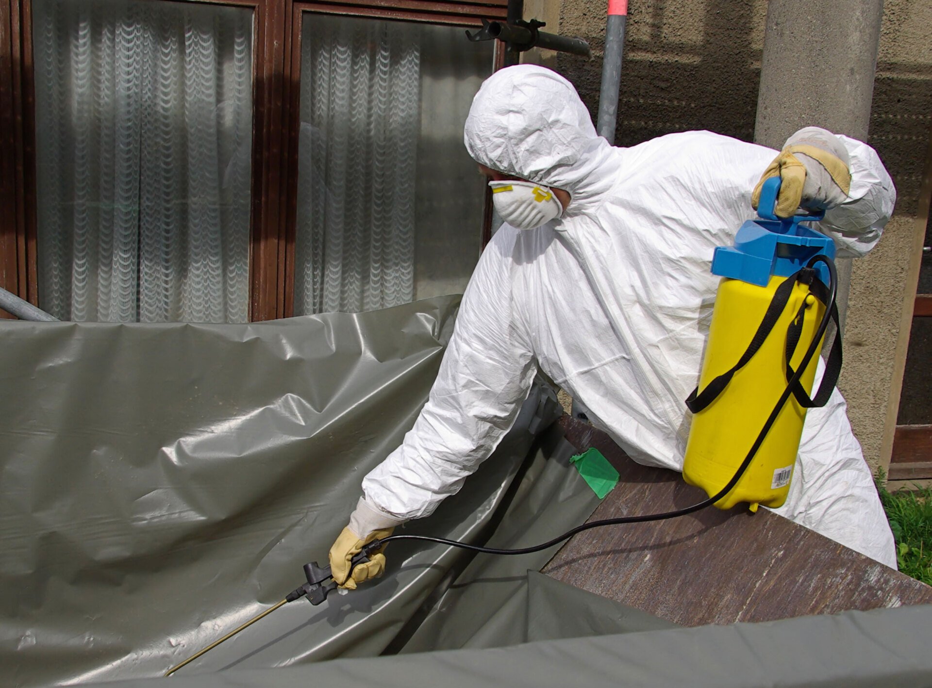 Abatement employees should put on applicable PPE, including respirators, disposable coveralls, gloves, and other protecting gear.